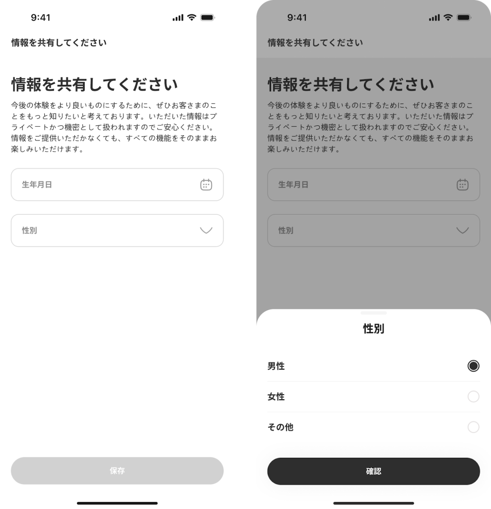 新たに、年齢と性別をで入力できるステップを追加しました。これにより、今後のバージョンではユーザーに合ったプロンプトや機能をもっと使いやすく提供できるようになります。なお、この入力は任意のため、現在のアプリ利用に影響はございません。入力しなくても、これまで通りアプリを利用できます。