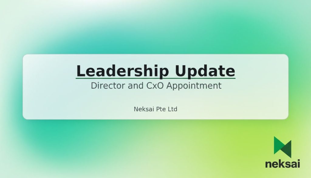 Neksai Pte Ltdは、2026年1月30日に行われた株主総会並びに同日行われた取締役会において以下のとおりマネジメント体制を刷新し、ガバナンス体制の強化並びにコンプライアンスの徹底が可能となる組織といたしましたことを発表いたします。