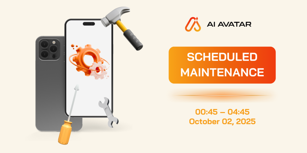メンテナンス期間中は、AI AVATARアプリ、A2Vアプリ、オンラインストア、AMS、マーケットプレイスを含むサービスへのアクセスが一時的にご利用いただけません。