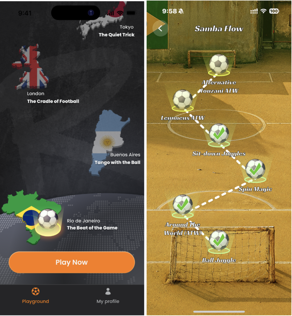 そして最大の魅力は、AIロナウジーニョと一緒に世界を転戦できることです。あなたはゲームの世界で最高の人々から学ぶことになります。世界チャンピオンのフリースタイラーや、オンラインで何百万人もの人々を魅了するクリエイター、そしてAIロナウジーニョ本人がアプリの中に勢ぞろいしています。彼らが持つエネルギーと創造性、そしてフリースタイルフットボールのスピリットを、あなたに直接お届けします。